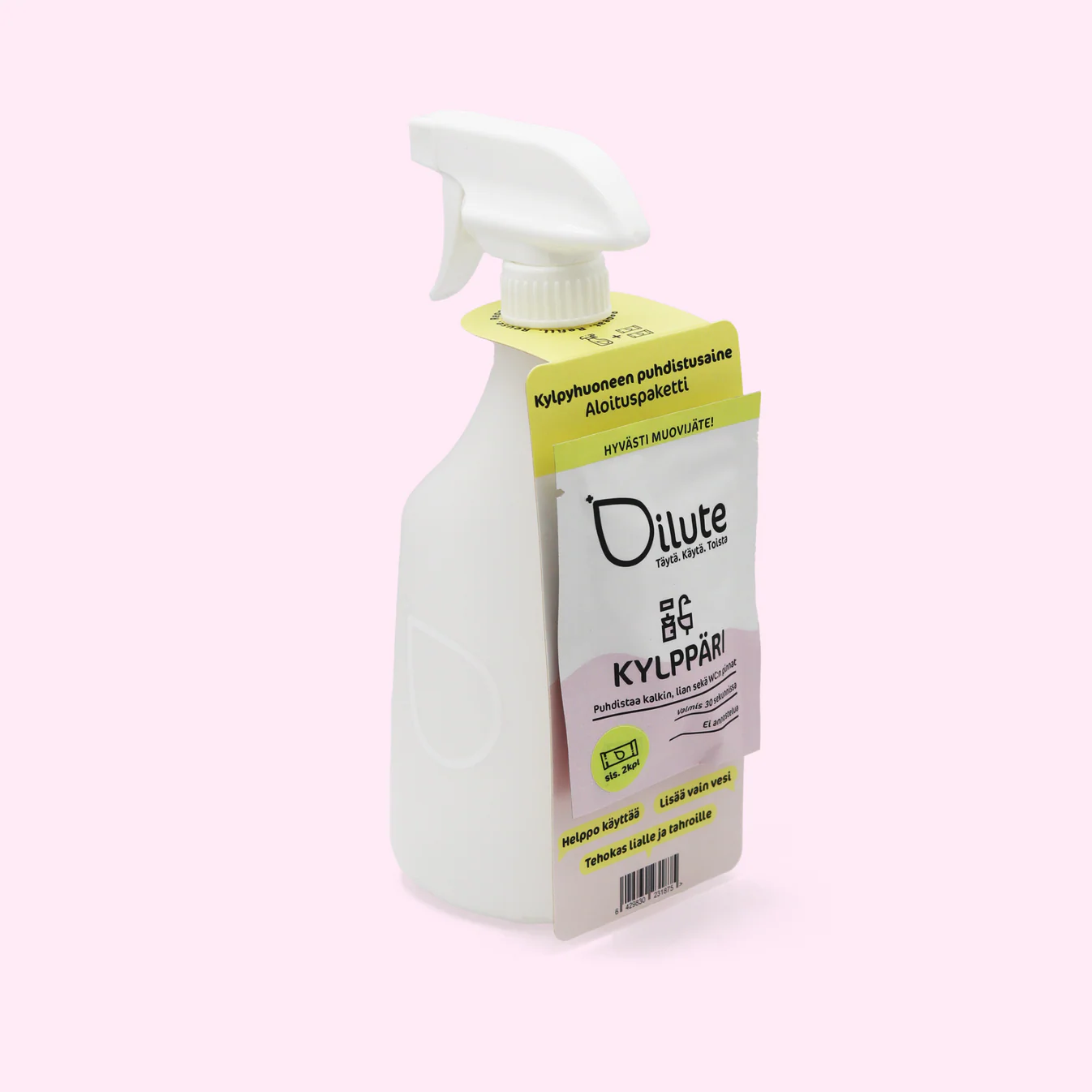 Dilute-tuoteperhe on tehokas ja ympäristöystävällinen pesuaine, joka sekoitetaan veteen itse. Biohajoava, vegaaninen ja uudelleenkäytettävä ratkaisu siistiin kylppäriin – vähemmän jätettä tinkimättä puhtaudesta.